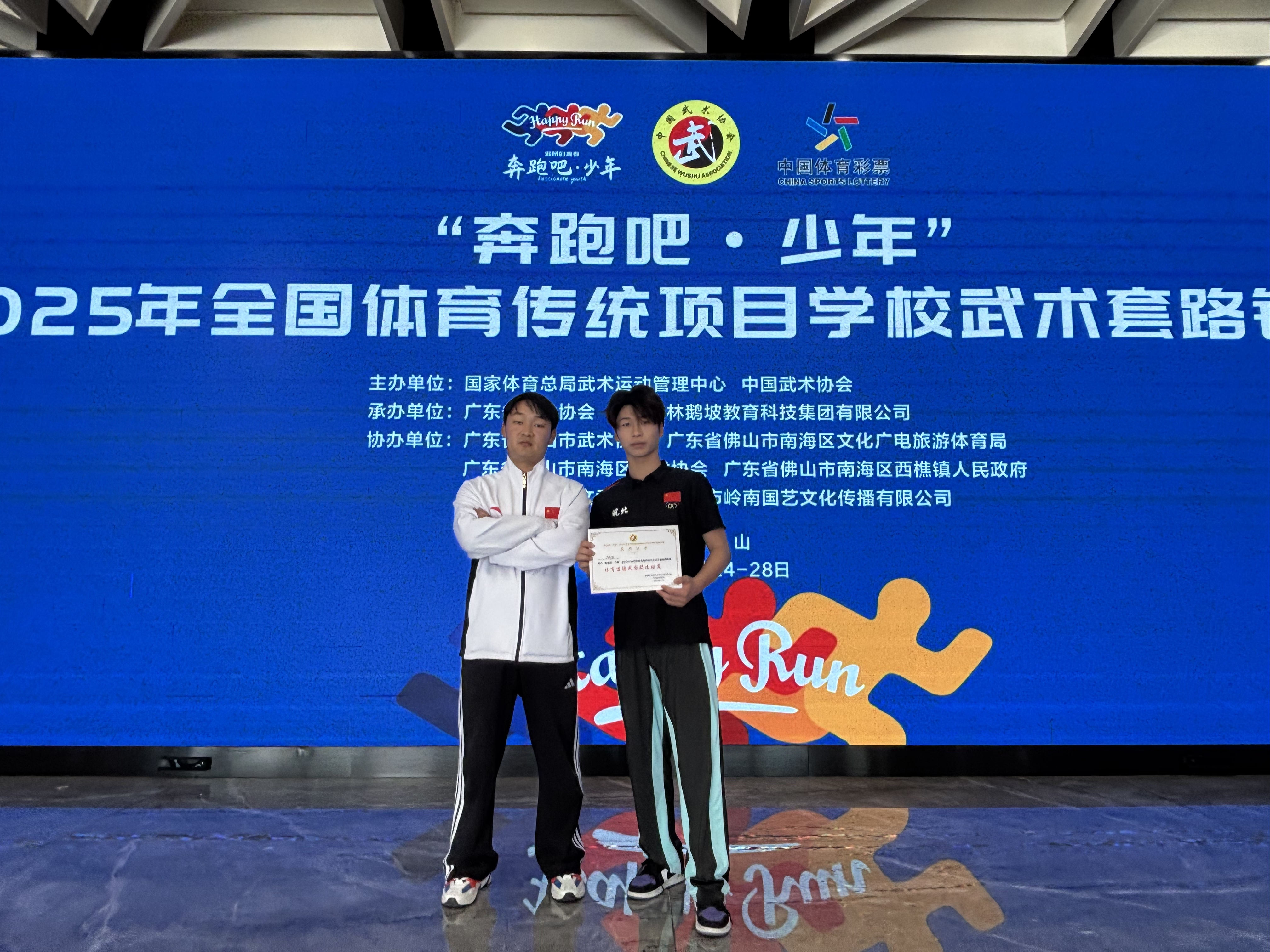 此次比赛由国家体育总局,国家体育总局武术运动管理中心联合主办,我校运动员在此次比赛中团体项目获得第五名的成绩,24体育2班同学张天豪荣获全国体育传统项目学校武术套路比赛体育道德风尚奖运动员。